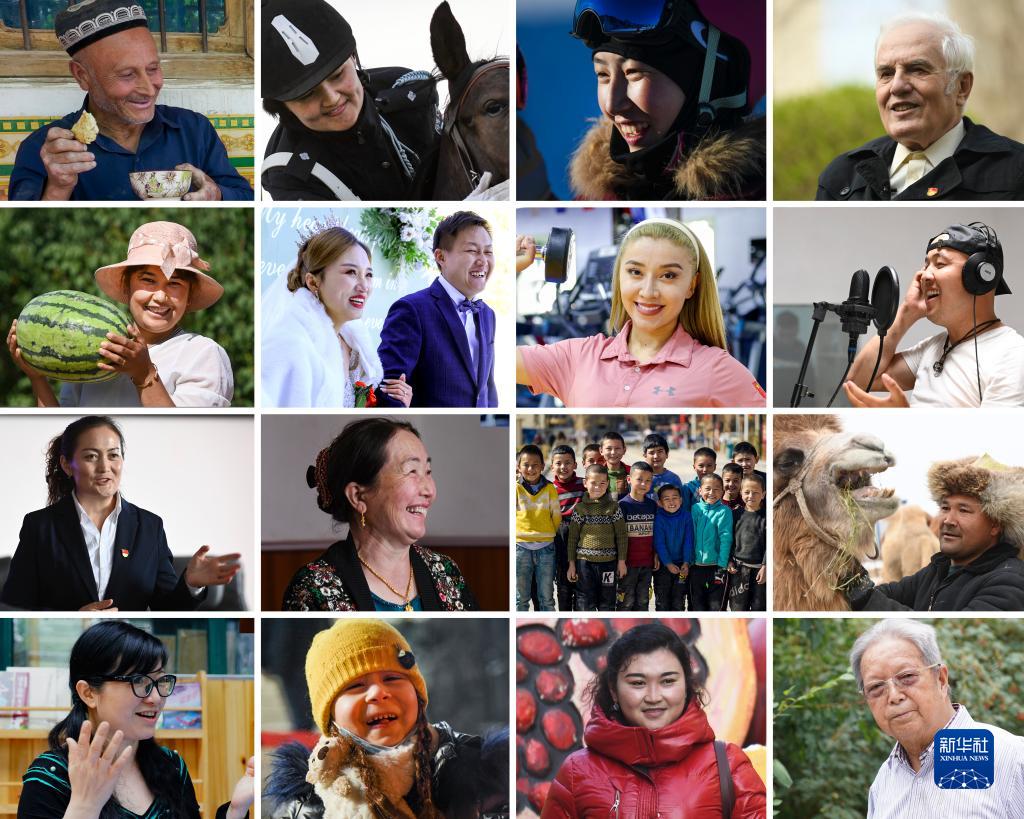 这是2021年拍摄的新疆各族群众的笑脸合集(拼版照片)。