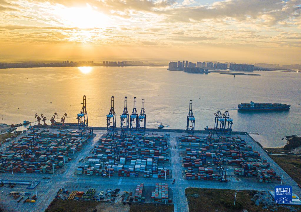 这是12月5日在海南洋浦经济开发区拍摄的洋浦国际集装箱码头(无人机照片)。新华社记者 蒲晓旭 摄