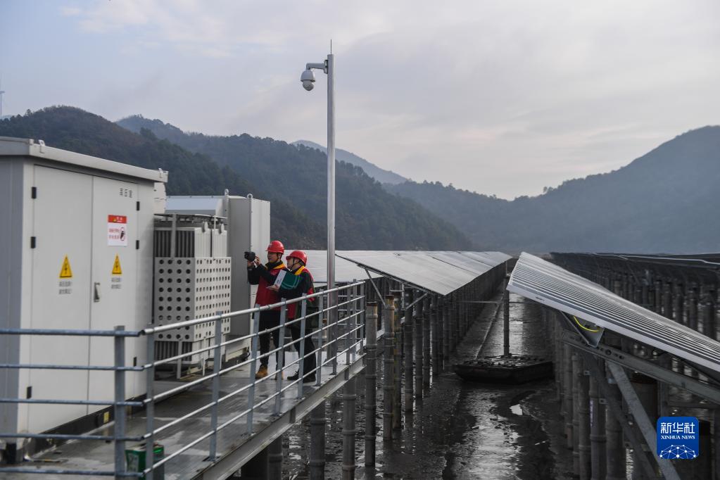 12月29日,电力部门工作人员在查看象山长大涂滩涂光伏项目的箱逆变一体机的运行情况。2021年投运的浙江象山长大涂滩涂光伏项目总装机容量30万千瓦,平均年发电量达3.4亿千瓦时,所发电量全部并入国家电网。按火力发电平均标准煤耗计算,该项目平均每年可节约标准煤10万吨,减少二氧化碳排放27万吨。