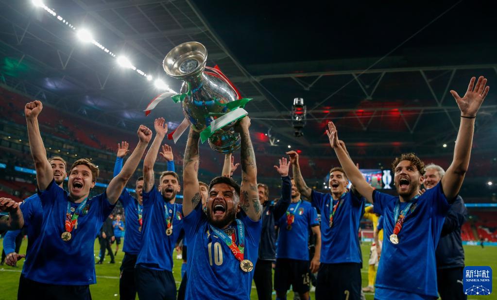 7月11日,意大利男足在欧锦赛决赛中经过点球大战,总比分4:3击败英格兰队,七战全胜捧起欧锦赛冠军奖杯。这是意大利队继1968年之后,时隔53年再次夺得欧锦赛冠军。