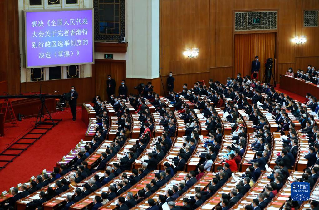 3月11日,十三届全国人大四次会议表决通过《全国人民代表大会关于完善香港特别行政区选举制度的决定》。这是继制定实施香港国安法后,中央依法治港的又一重大举措,是完善“一国两制”制度体系、落实中央对香港全面管治权的具体体现,为全面落实“爱国者治港”原则提供了更加坚实的制度保障。3月30日,十三届全国人大常委会第二十七次会议通过了新修订的香港基本法附件一和附件二。随后,香港特别行政区完成本地立法。新选举制度为推进香港民主稳步发展、实现良政善治,促进“一国两制”实践行稳致远打下坚实基础。