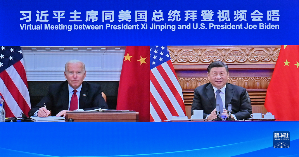 这是2021年11月16日上午,国家主席习近平在北京同美国总统拜登举行视频会晤。