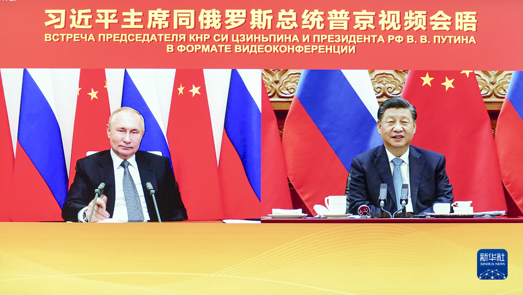 这是2021年12月15日下午,国家主席习近平在北京同俄罗斯总统普京举行视频会晤。
