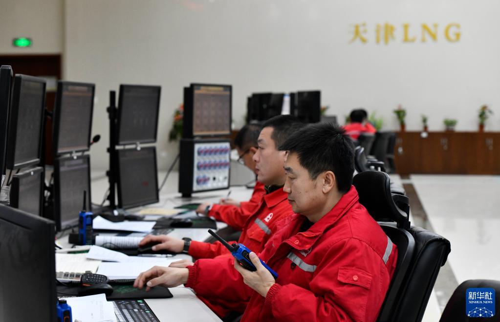 12月29日,工作人员在中国石化天津LNG接收站中控室内监测设备运行情况。新华社记者 赵子硕 摄