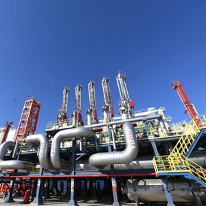 12月29日,工作人员在中国石化天津LNG接收站“2号泊位”上进行船舶接卸作业。新华社记者 赵子硕 摄