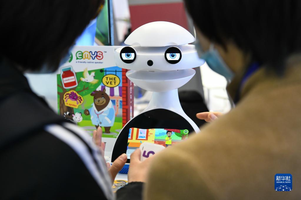 观众在第二十三届高交会波兰展位上了解一款教育机器人(12月28日摄)。