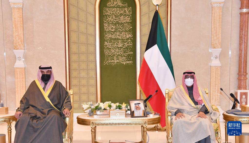 12月29日,在科威特哈瓦利省,科威特王储米沙勒(右)会见首相萨巴赫·哈立德。