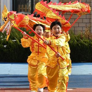 12月29日,山东省烟台市福山区清洋街道中心幼儿园的小朋友表演舞龙。