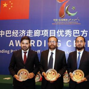 当日,中巴经济走廊项目优秀巴基斯坦员工颁奖仪式在伊斯兰堡举行,来自瓜达尔港、能源、基础设施建设、产业合作等领域项目的27名巴方员工获奖。