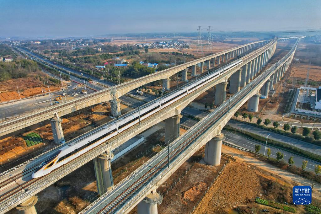 当日,京港高铁安庆至九江段开通运营,合肥至南昌实现高铁直通,这标志着我国“八纵八横”高铁网京港(台)通道商丘至深圳段全线贯通。京港高铁安九段自安庆西站引出,线路全长176公里,设计时速350公里,全线共设7座车站。