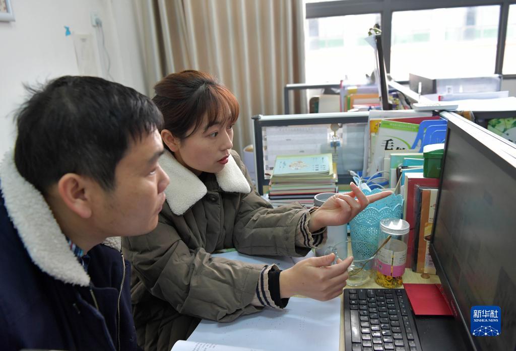 在江西省宜春市特殊教育学校,樊海艳在办公室和同事一起商量如何编排学生们的舞蹈(12月28日摄)。