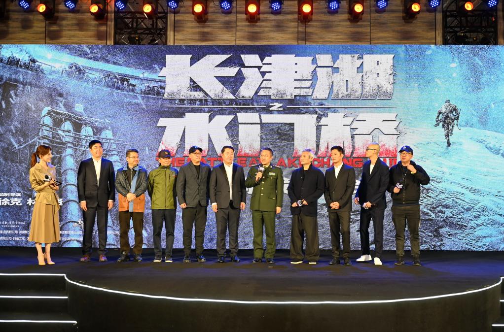 12月30日拍摄的电影《长津湖之水门桥》新闻发布会现场。