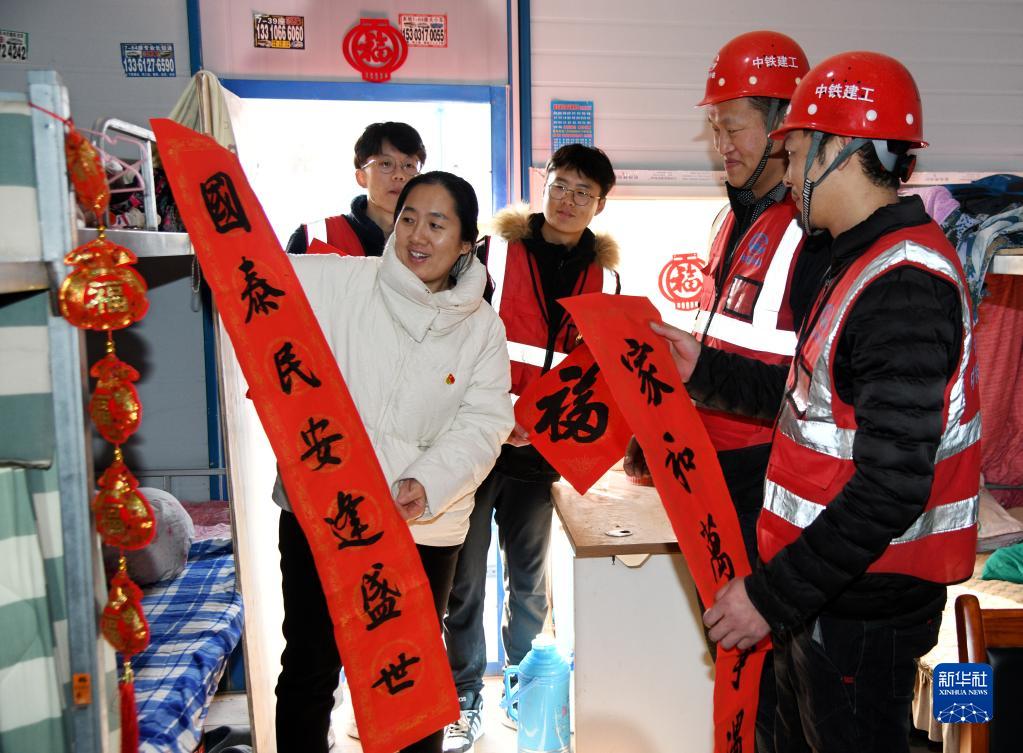 12月30日,中铁建工山东公司即墨中心城项目部开展“送福进工地”活动,把职工宿舍装扮得年味十足。