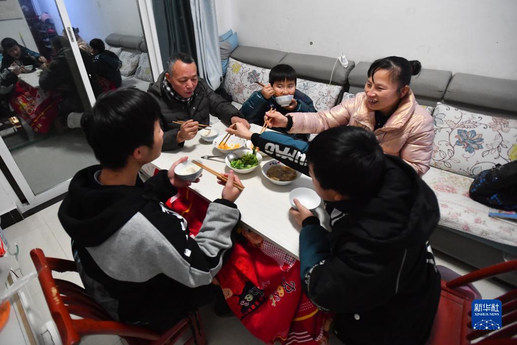 在洪家塅安居小区,居民徐罗辉(右二)和家人吃晚餐(12月29日摄)。