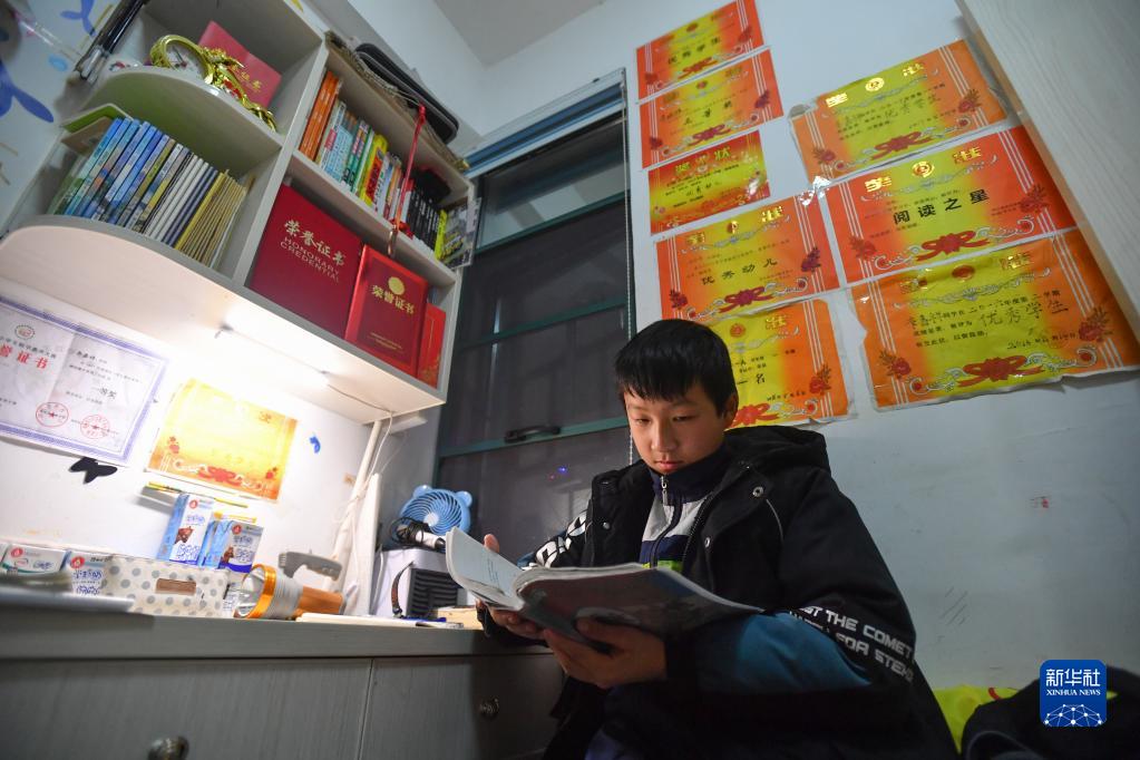 在洪家塅安居小区,李嘉祥在家中温习功课(12月29日摄)。