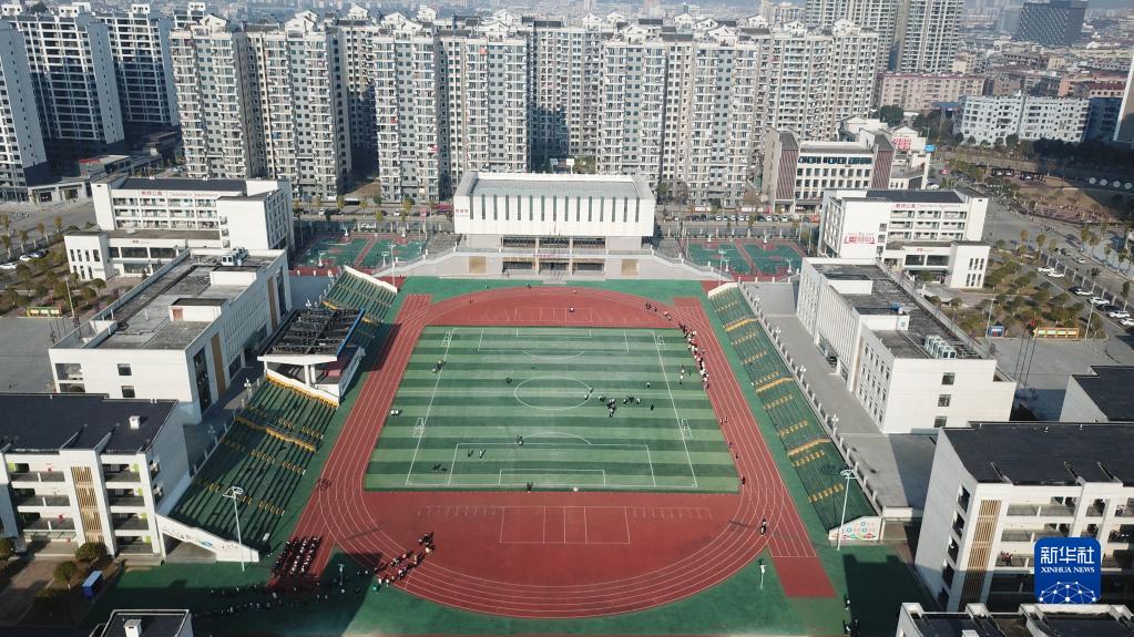这是洪家塅安居小区的配套学校桂花学校一角(12月30日无人机照片)。