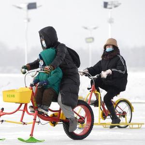 12月30日,游客在哈尔滨松花江冰雪嘉年华园区游玩。