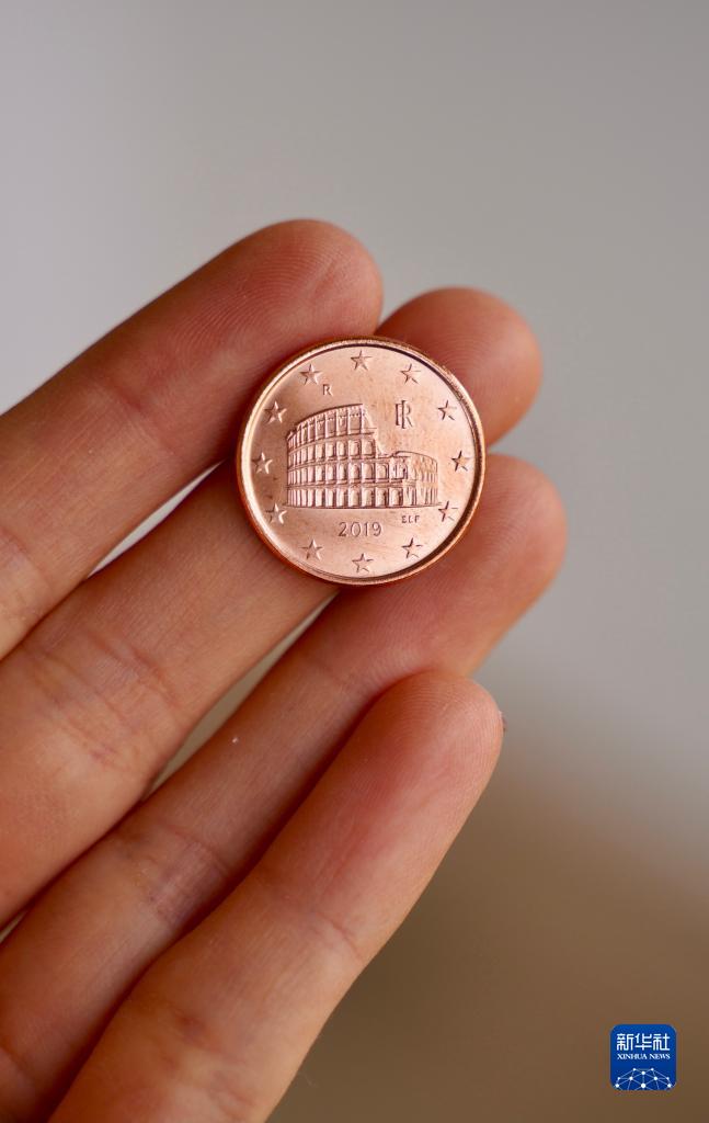 这是2021年12月30日在意大利罗马拍摄的由意大利发行的5欧分硬币背面,印有斗兽场图案。