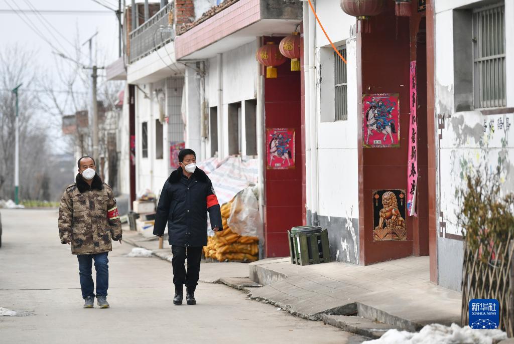 12月30日,在西安市长安区五台街道东甘村,工作人员在进行巡视。