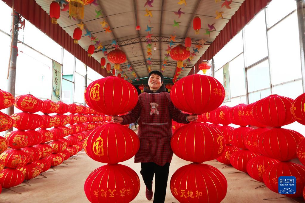 12月31日,河南省长葛市古桥镇本庄村的村民在整理灯笼。新华社发(牛书培摄)