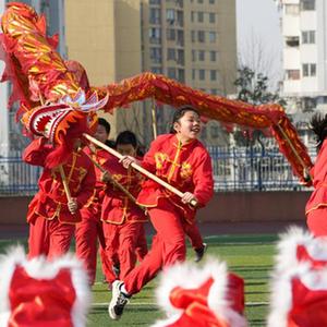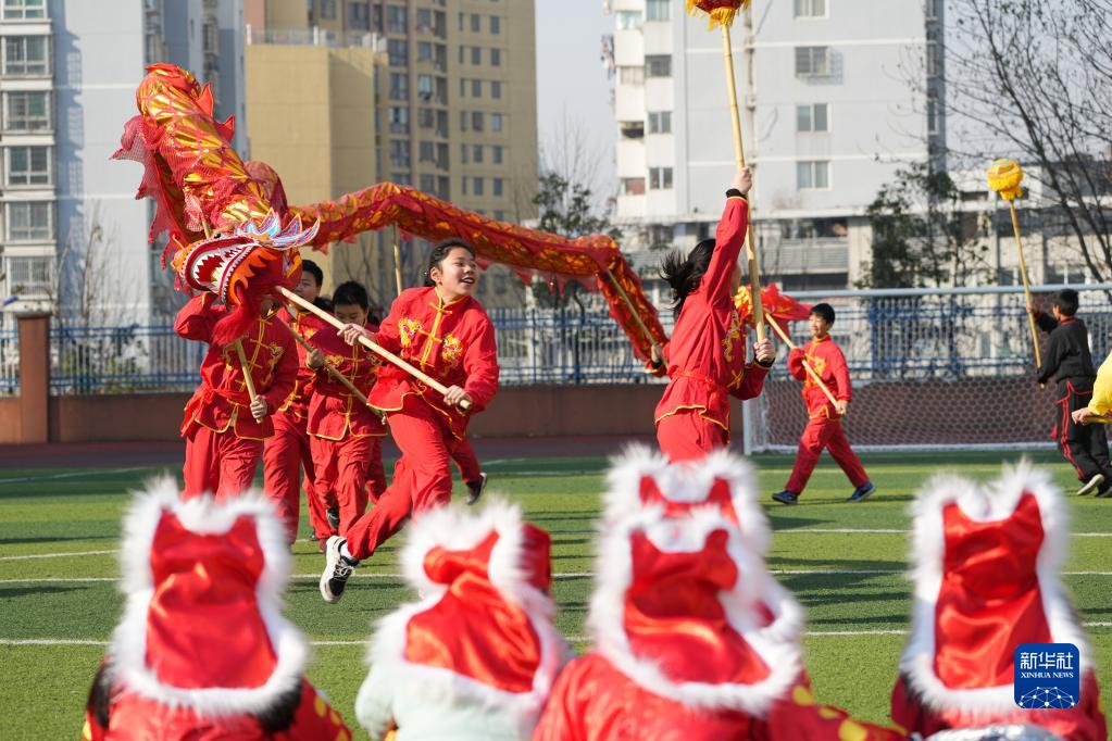 12月31日,在安徽省合肥市蚌埠路第二小学,学生们开展“舞龙庆元旦,虎娃迎新春”活动。