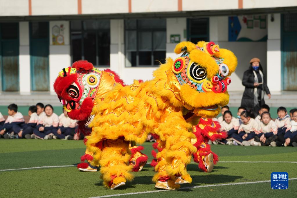 12月31日,在安徽省合肥市蚌埠路第二小学,学生们开展“舞龙庆元旦,虎娃迎新春”活动。