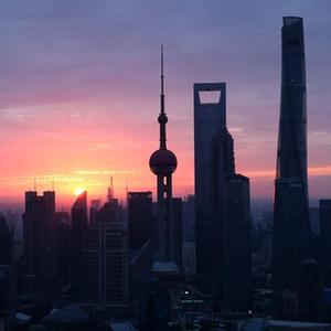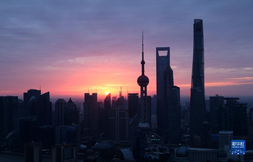 2022年1月1日在上海陆家嘴拍摄的新年初升的太阳。