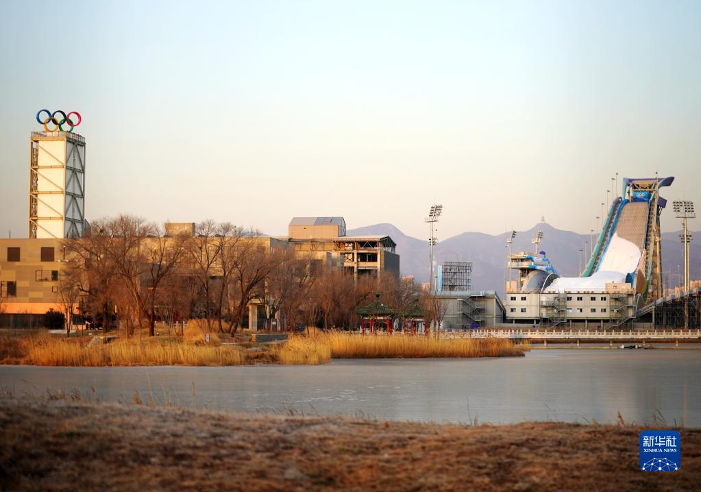 2022年1月1日新年第一缕阳光照耀下的首钢滑雪大跳台。首钢滑雪大跳台是北京冬奥会北京赛区唯一的雪上项目竞赛场馆,这里将诞生4块北京冬奥会金牌。