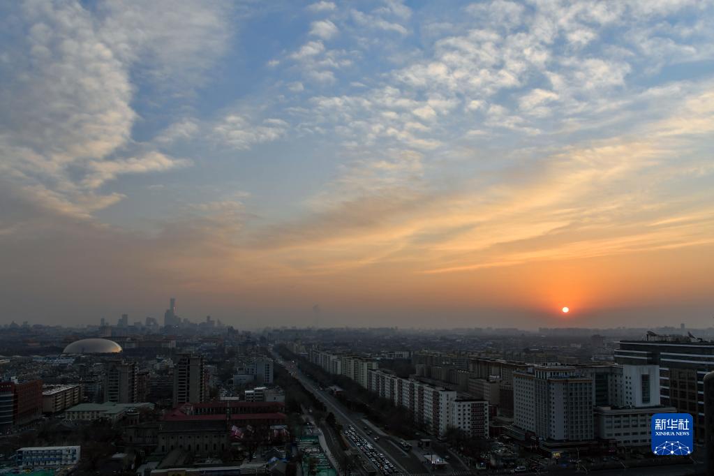 2022年1月1日在北京宣武门拍摄的初升的太阳。