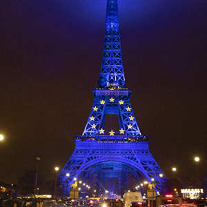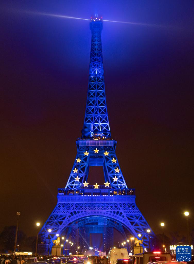 埃菲尔铁塔亮灯 庆祝法国轮任欧盟主席国