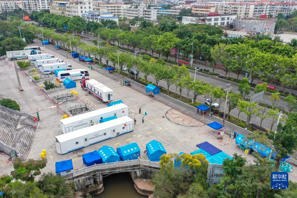 这是2021年12月31日15时51分拍摄的东兴市临时设置的移动方舱实验室(无人机照片)。