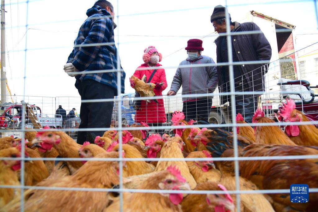 1月1日,适逢山东省枣庄市山亭区山亭大集,村民趁着冬闲,涌向乡村大集,选购商品。这是村民在选购家禽