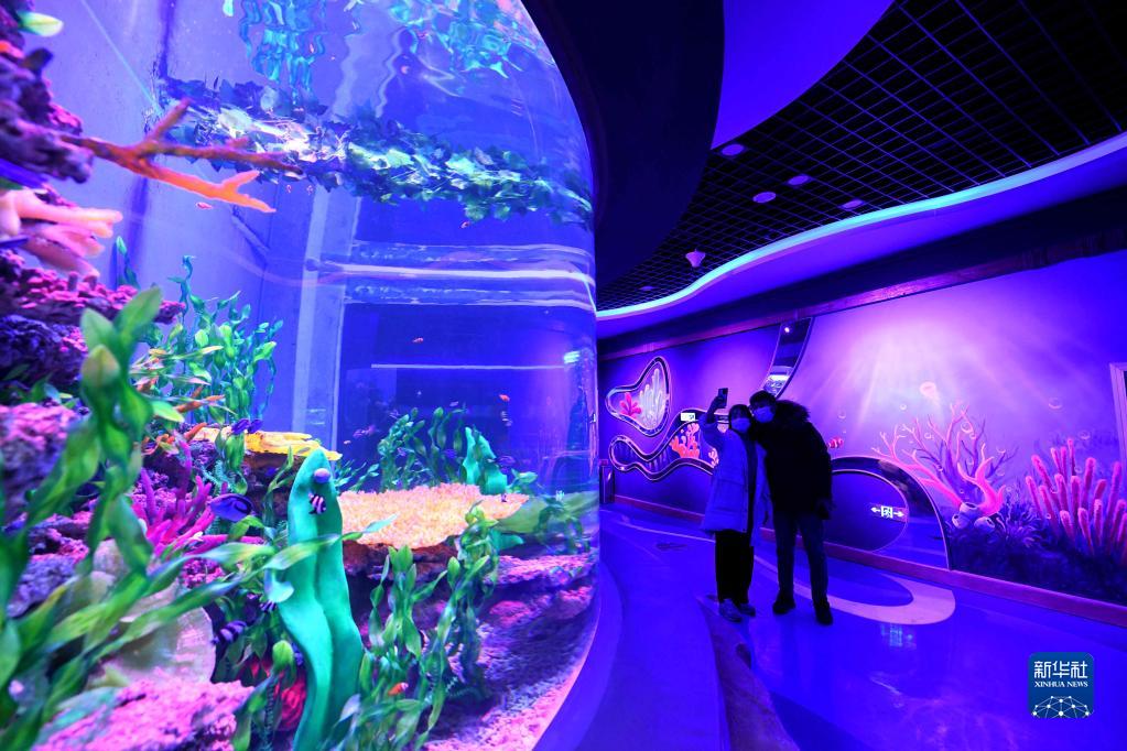 1月1日,河北省石家庄市动物园极地海洋世界正式对外开放,市民在场馆内参观。