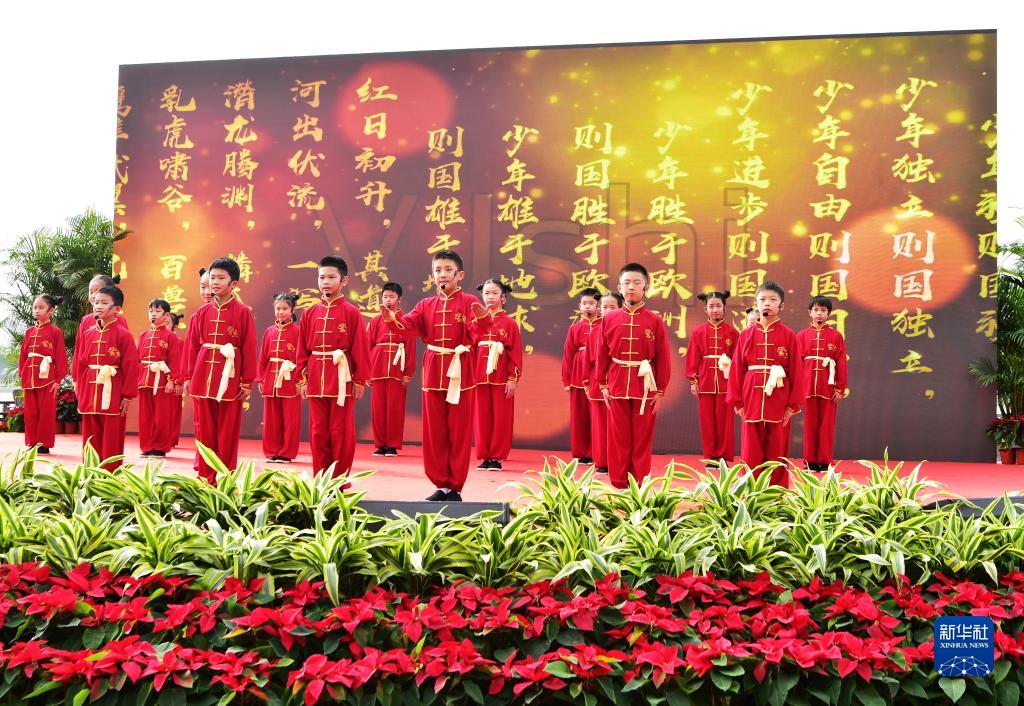 1月1日,在福州植物园,小朋友在新年诗歌朗诵音乐会上表演节目。