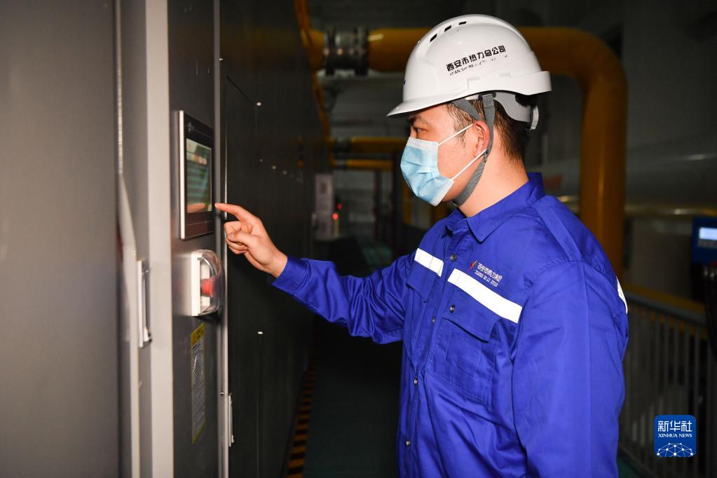2022年1月1日凌晨,西安市热力集团幸福林带供热站生产运行室三值值长王宇星调试设备。本轮疫情发生后,王宇星与30余名同事以站为家,保障群众温暖过冬。