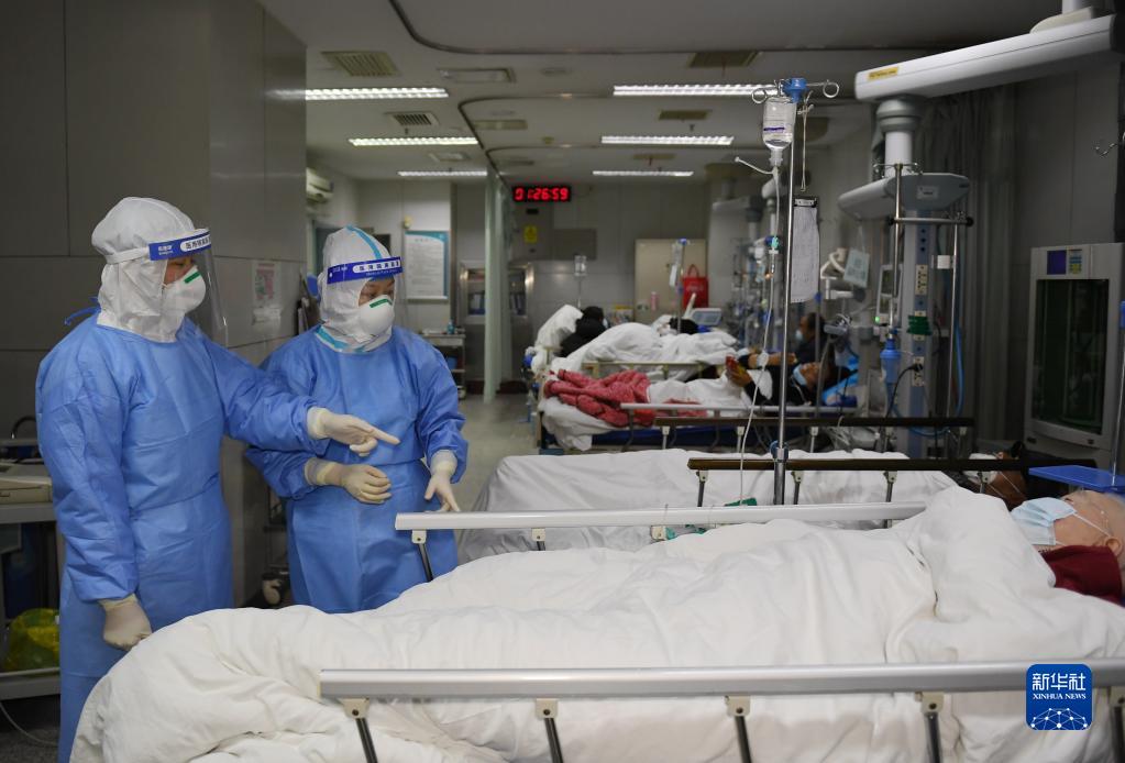 2022年1月1日凌晨,西安交通大学第二附属医院急诊科医生郑少微(左)向护士樊鑫安排急诊患者治疗方案。为保障患者就医需求,在严格做好防疫措施的前提下,该医院主院区于2021年12月24日恢复门急诊,郑少微和其他医护人员坚守工作岗位救治患者,迎接新年。