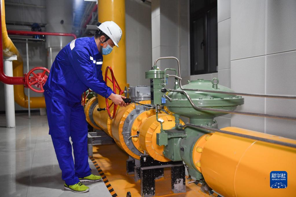 2022年1月1日凌晨,西安市热力集团幸福林带供热站生产运行室三值值长王宇星查看设备运行情况。本轮疫情发生后,王宇星与30余名同事以站为家,保障群众温暖过冬。
