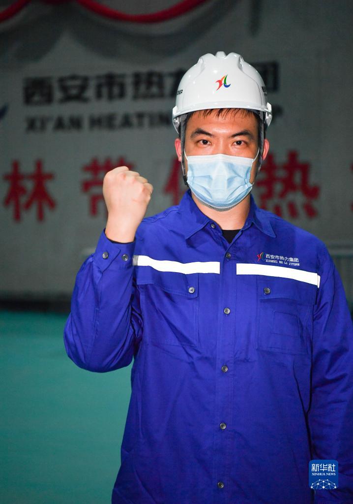 2022年1月1日凌晨,西安市热力集团幸福林带供热站生产运行室三值值长王宇星在工作岗位上为西安加油。