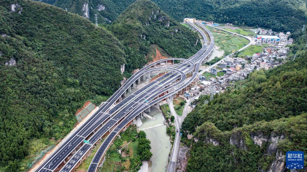 这是秀山至印江高速公路木黄互通(2021年8月15日摄,无人机照片)。