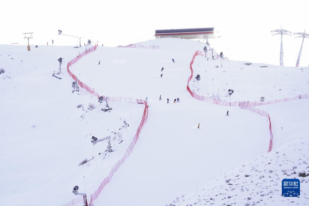 1月1日,滑雪爱好者在新疆阿勒泰市将军山滑雪场滑雪。