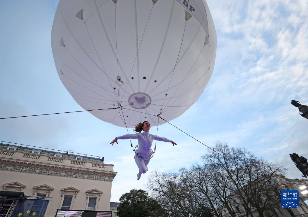 当日,伦敦举行新年游行活动。由于疫情影响,新年游行活动的现场观众人数受到限制。