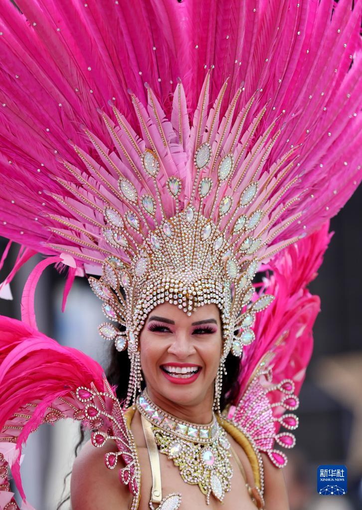 2022年1月1日,一名舞者在英国伦敦参加新年游行活动。