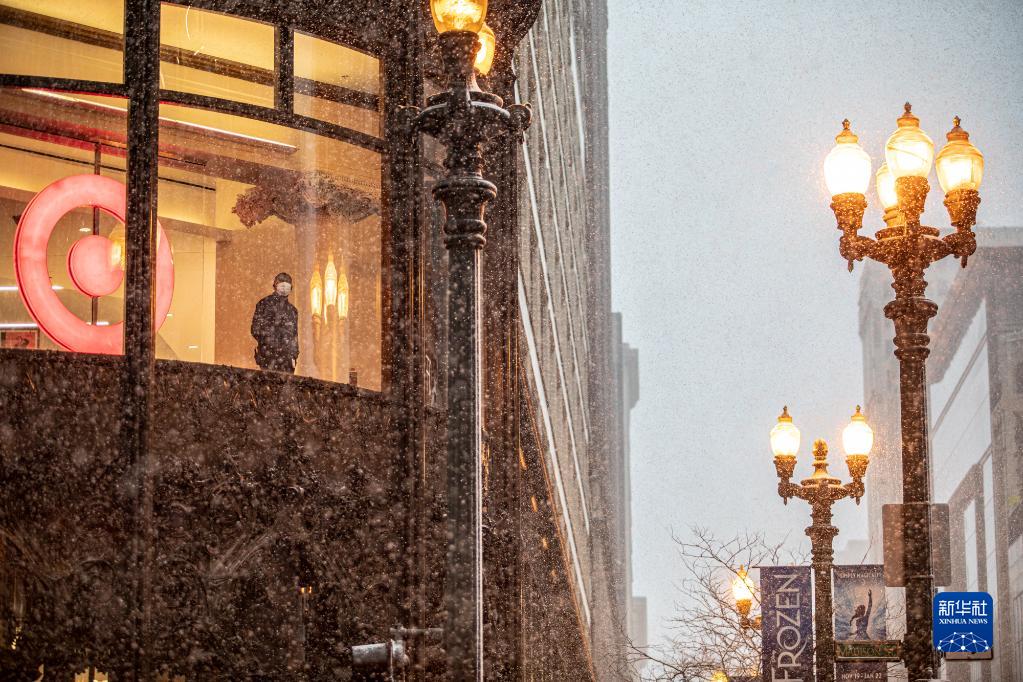 2022年1月1日,一名工作人员在美国芝加哥的商场望向窗外。新华社发(文森特·约翰逊摄)