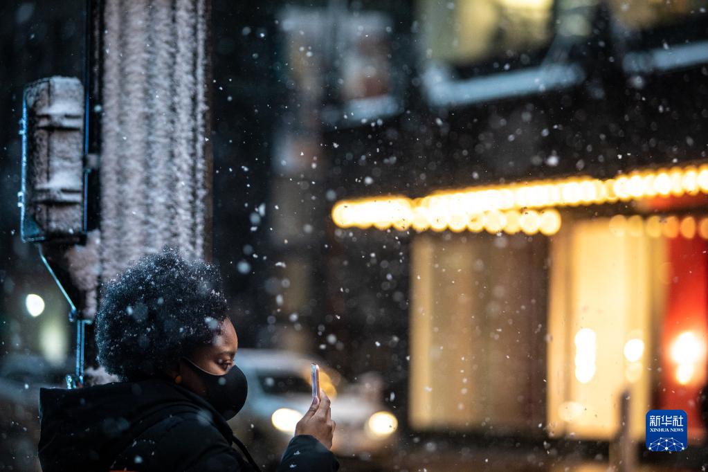 2022年1月1日,在美国芝加哥,一名女子等待过马路。新华社发(文森特·约翰逊摄)