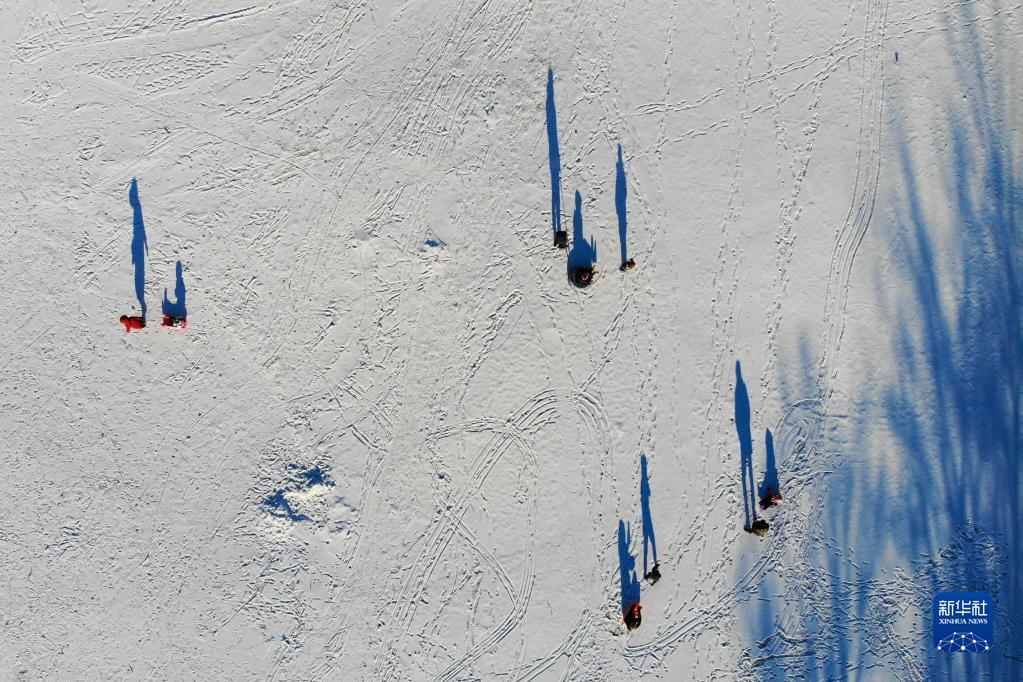 1月2日,市民在松花江冰面上游玩(无人机照片)。