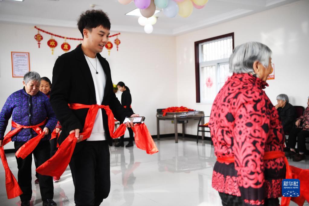 一次,他拍摄的展示养老院生活的视频偶然走红,之后,他便尝试带着老人们拍抖音、玩“热梗”、耍游戏。如今,他组建了一支由10名同龄人组成的新媒体团队,专门负责陪老人们玩耍并记录日常。充实而热闹的生活,带给老人们很多欢乐,也让更多人对养老院有了新的认识。