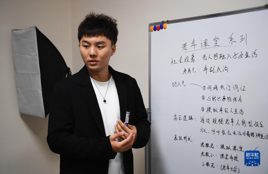 一次,他拍摄的展示养老院生活的视频偶然走红,之后,他便尝试带着老人们拍抖音、玩“热梗”、耍游戏。如今,他组建了一支由10名同龄人组成的新媒体团队,专门负责陪老人们玩耍并记录日常。充实而热闹的生活,带给老人们很多欢乐,也让更多人对养老院有了新的认识。