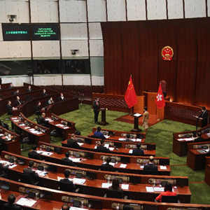 1月3日11时许,香港特区第七届立法会90位议员开始宣誓。香港特区行政长官林郑月娥为议员监誓。图为宣誓仪式现场。