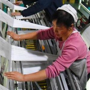 1月4日,工人们在江苏连云港高新区海州工业园一家毛毯公司的车间内忙碌。