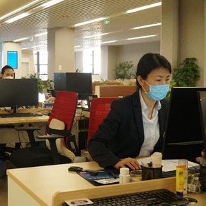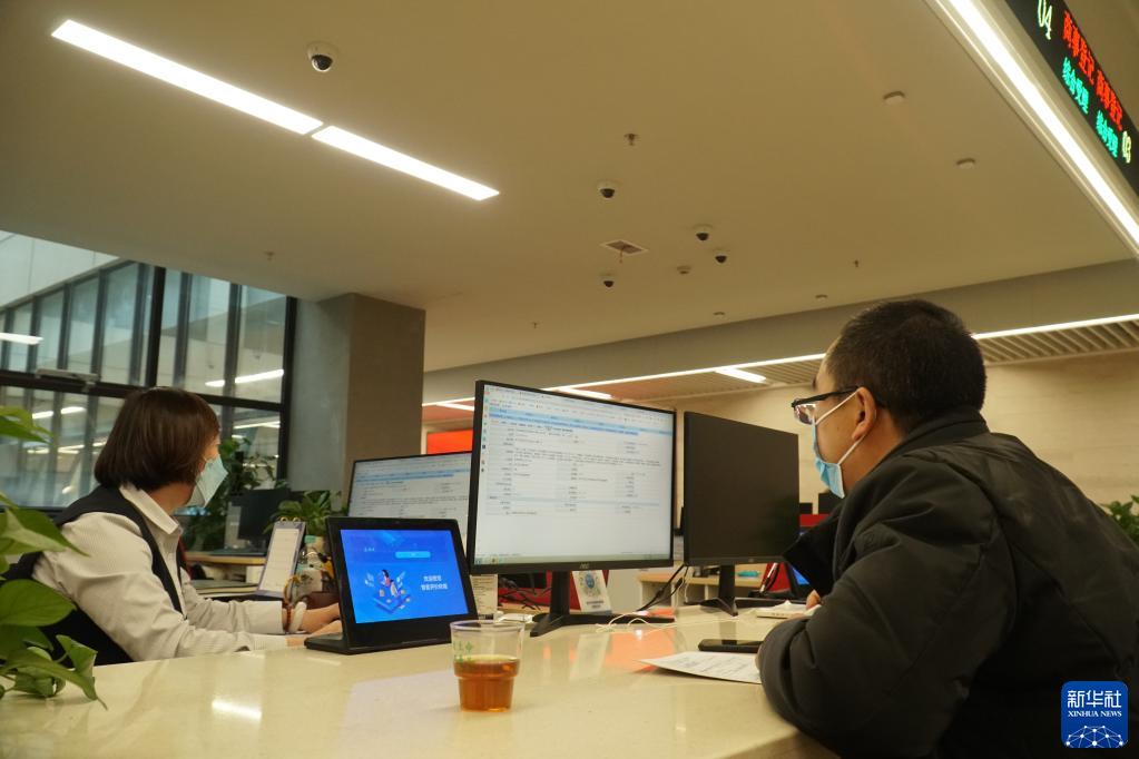 1月4日中午,青海省西宁市市民中心办事大厅,工作人员王翔南(左)为办事群众办理经营范围变更登记业务。
